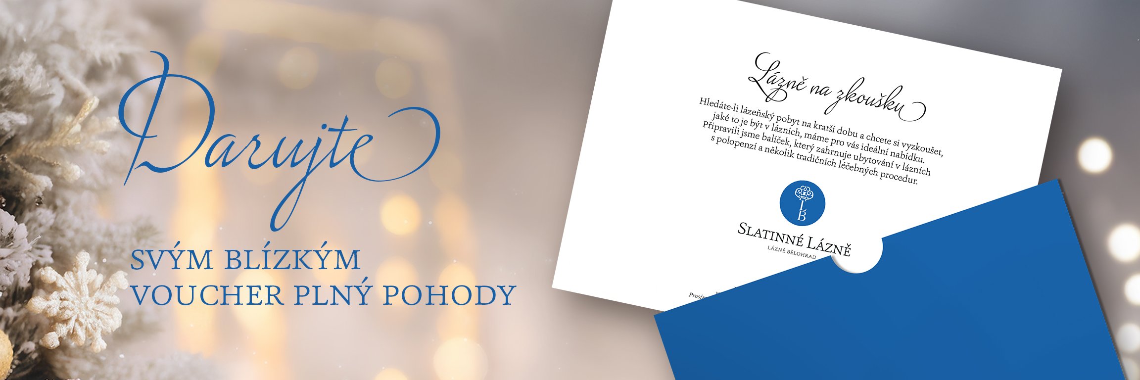 Darujte svým blízkým odpočinek, pohodu a prvotřídní služby v bělohradských Slatinných lázních. Dárkové poukazy vystavujeme na konkrétní službu nebo určenou částku.