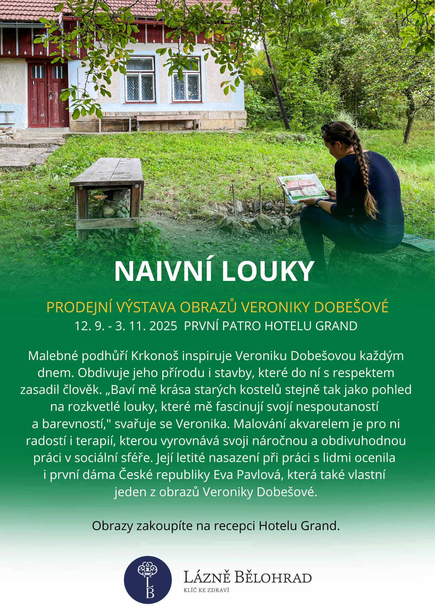 Srdečně vás zveme na prodejní výstavu obrazů Veroniky Dobešové s názvem Naivní louky. Obrazy jsou umístěny od 12. září 2025